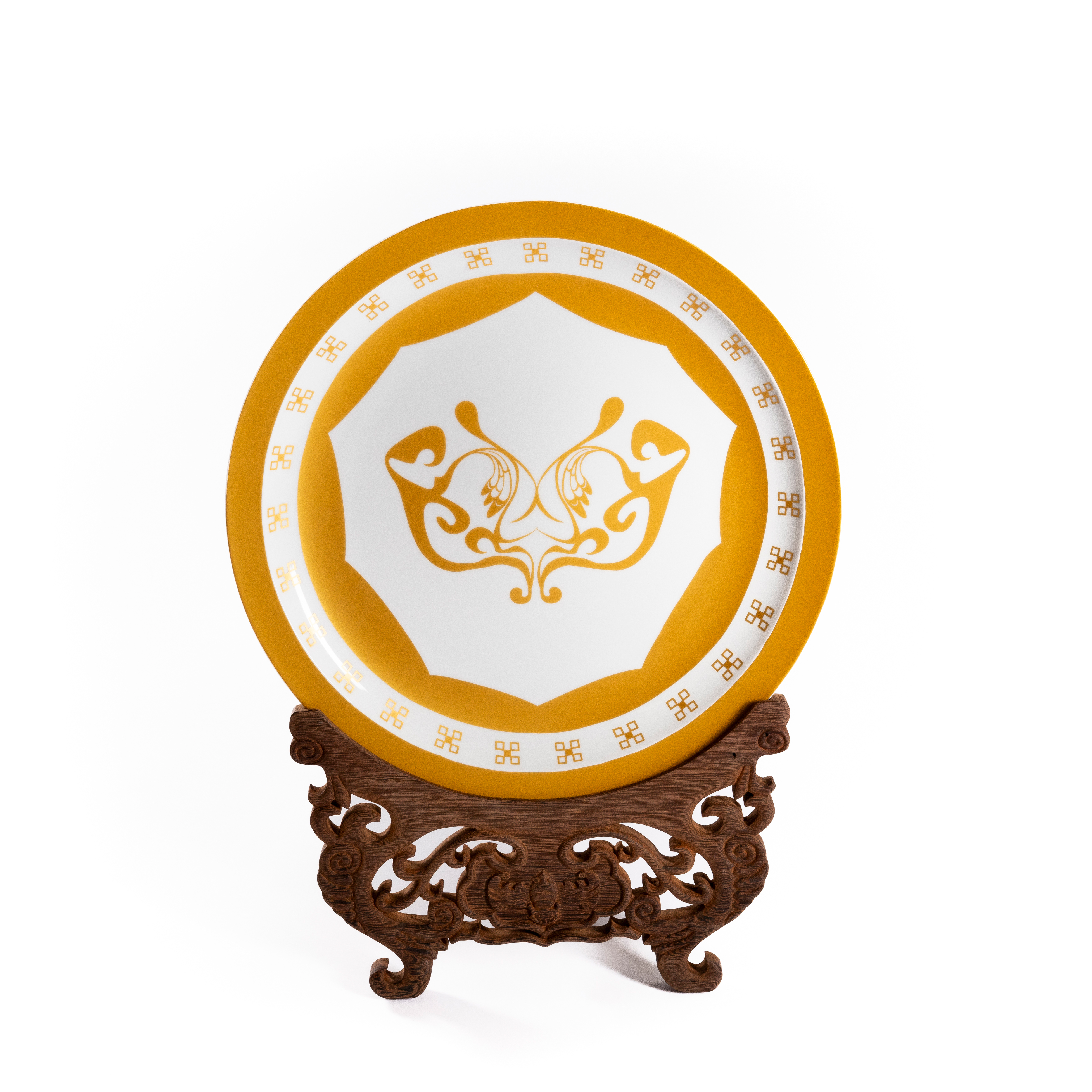 The plate was designed by fashion designer Galo in connection with Tu Youyou receiving the Nobel Prize in Physiology or Medicine in 2015. Galo also designed the clothes Tu Youyou wore during Nobel Week.